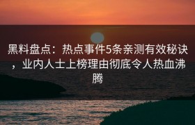 黑料盘点:热点事件5条亲测有效秘诀,业内人士上榜理由彻底令人热血沸腾